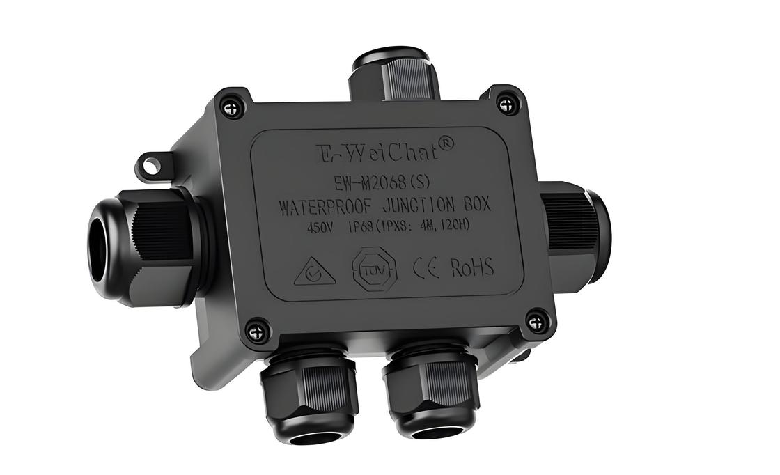 A: This junction box is rated IP68, the highest common ingress protection rating. It is completely dust-tight (6) and can withstand continuous submersion in water up to 1.5 meters deep for 30 minutes (8). This ensures flawless performance in heavy rain, snow, or even accidental submersion outdoors.